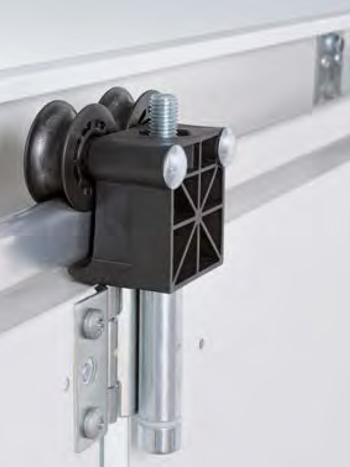 Panely o tloušťce 42 mm vyplněné polyuretanovou pěnou jsou bezpečně a precizně vedeny nahoře stabilními dvojitými vodicími kladkami a dole v zaoblené podlahové kolejnici. Díky konstrukci, která je na obou koncích otevřená, lze podlahovou kolejnici snadno čistit. |